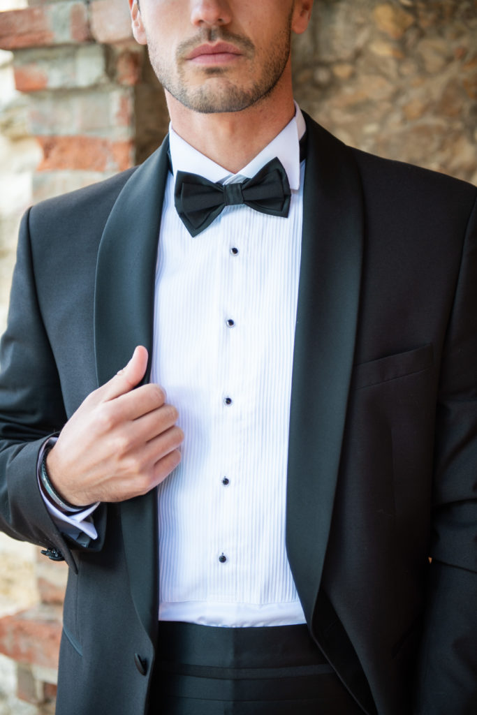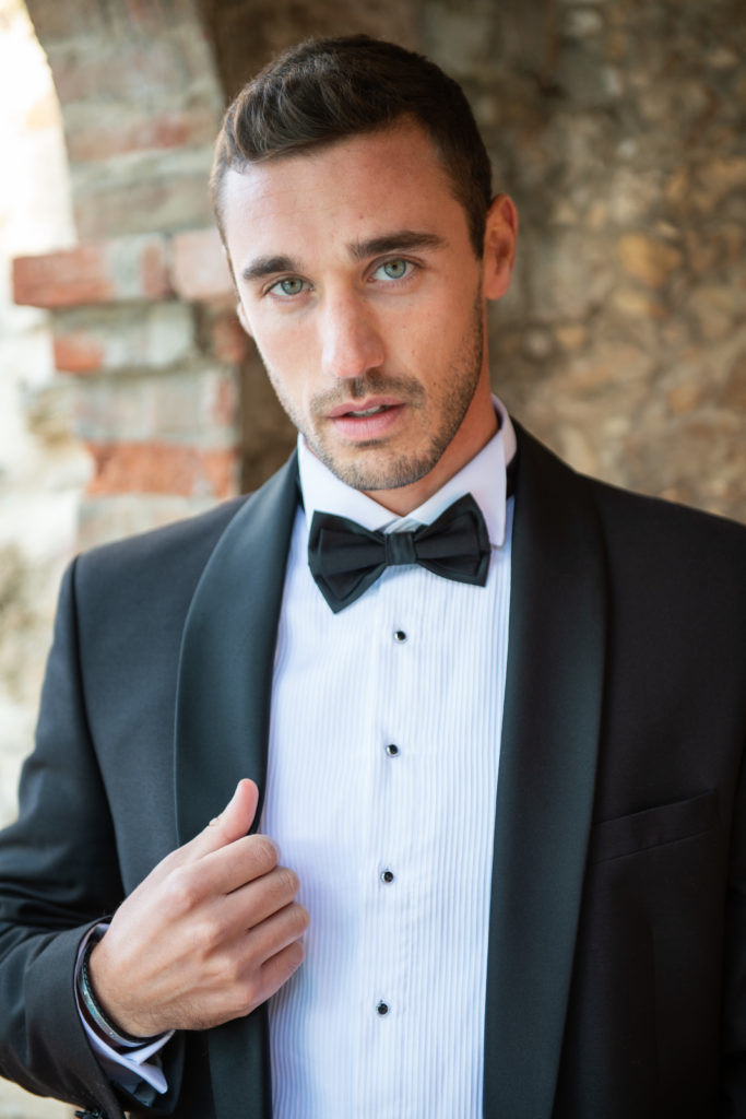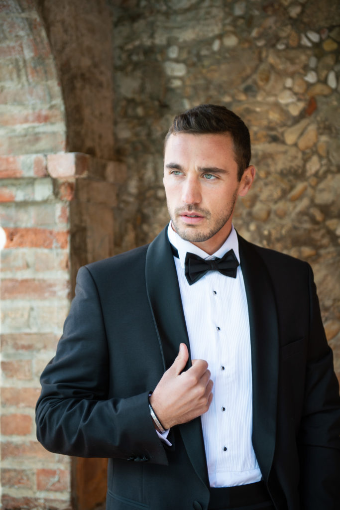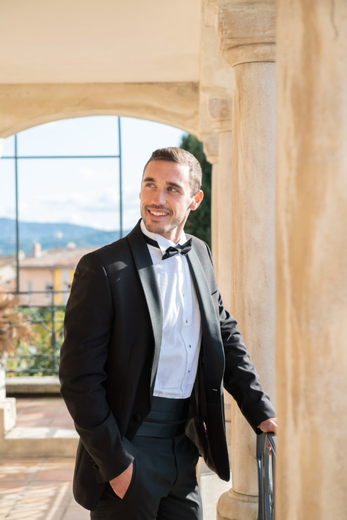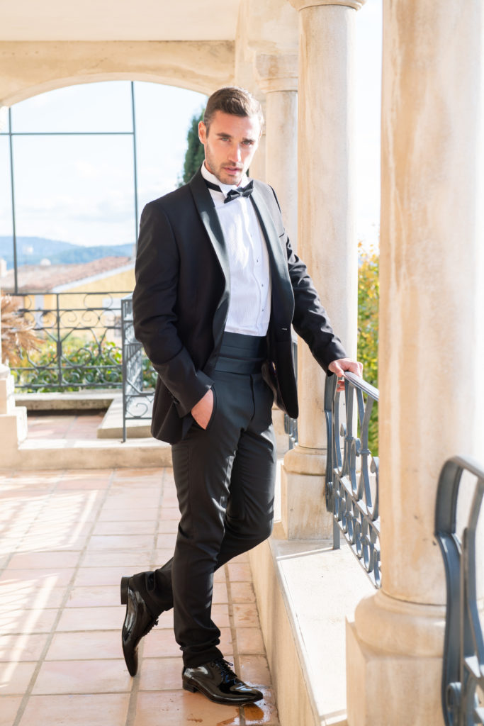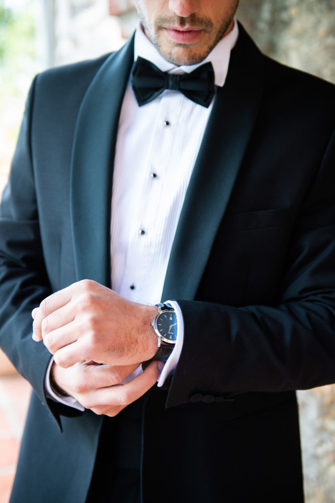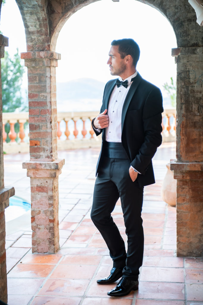 Alejandro, le modèle marié, portait un costume noir, tout en sobriété, créé par le créateur Accord Parfait.