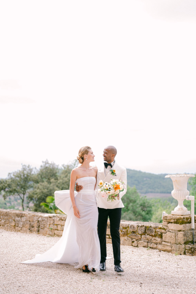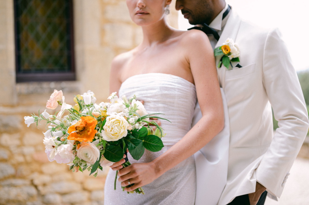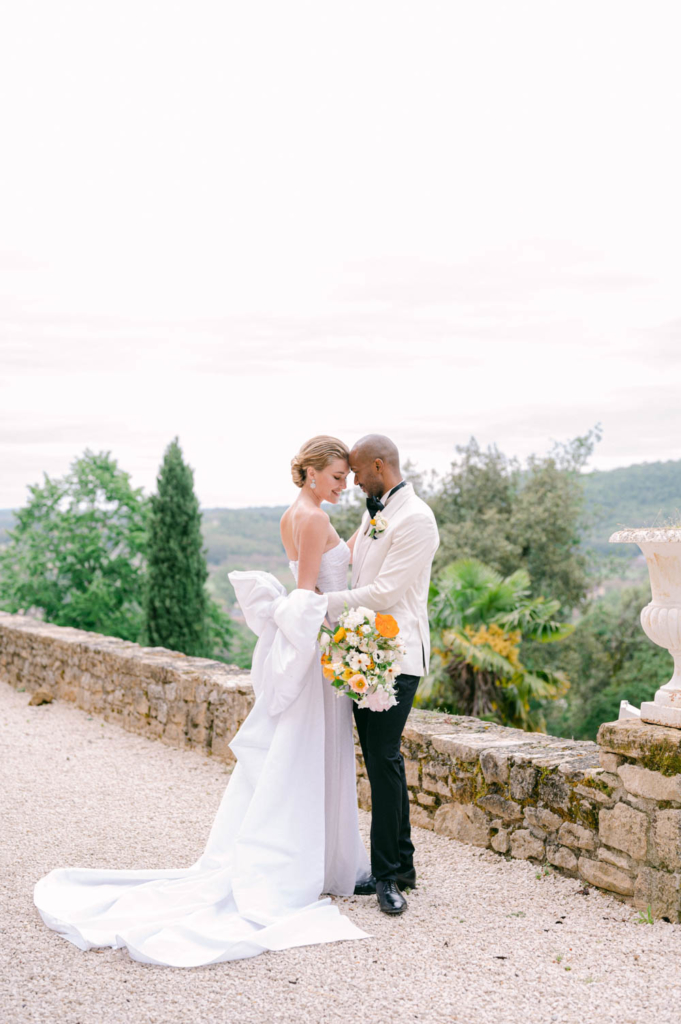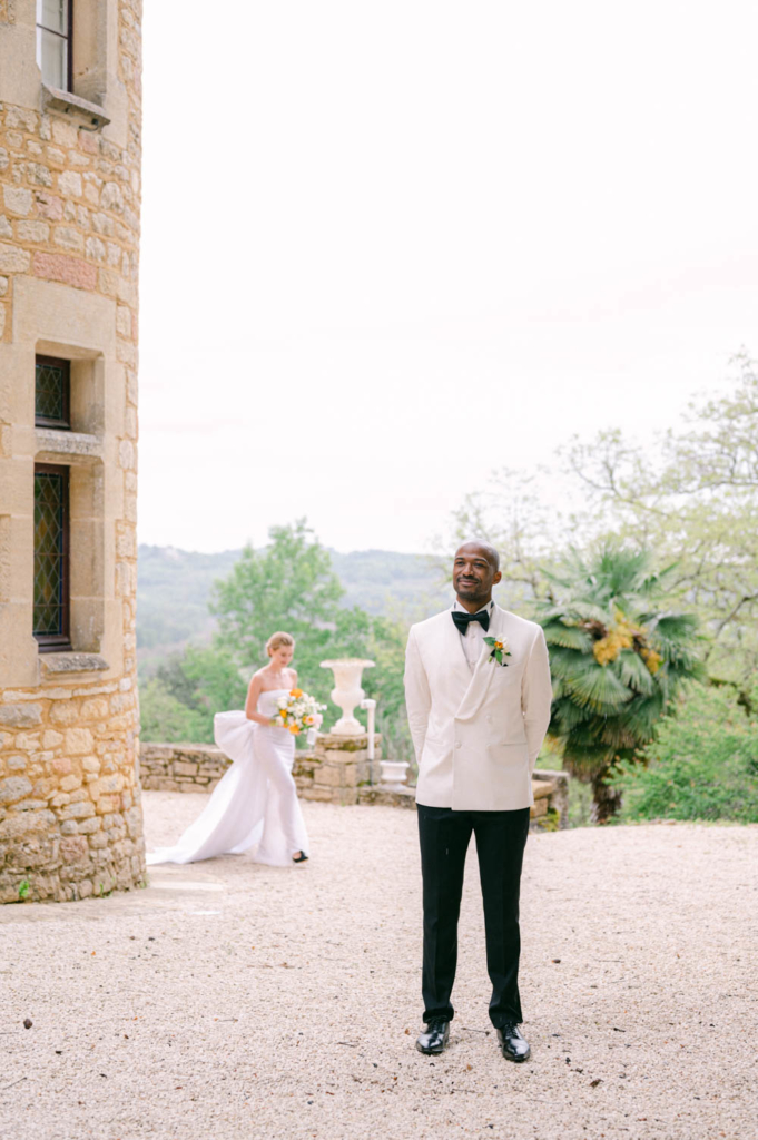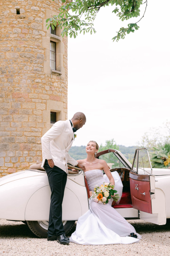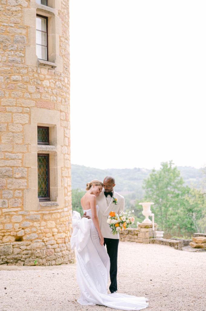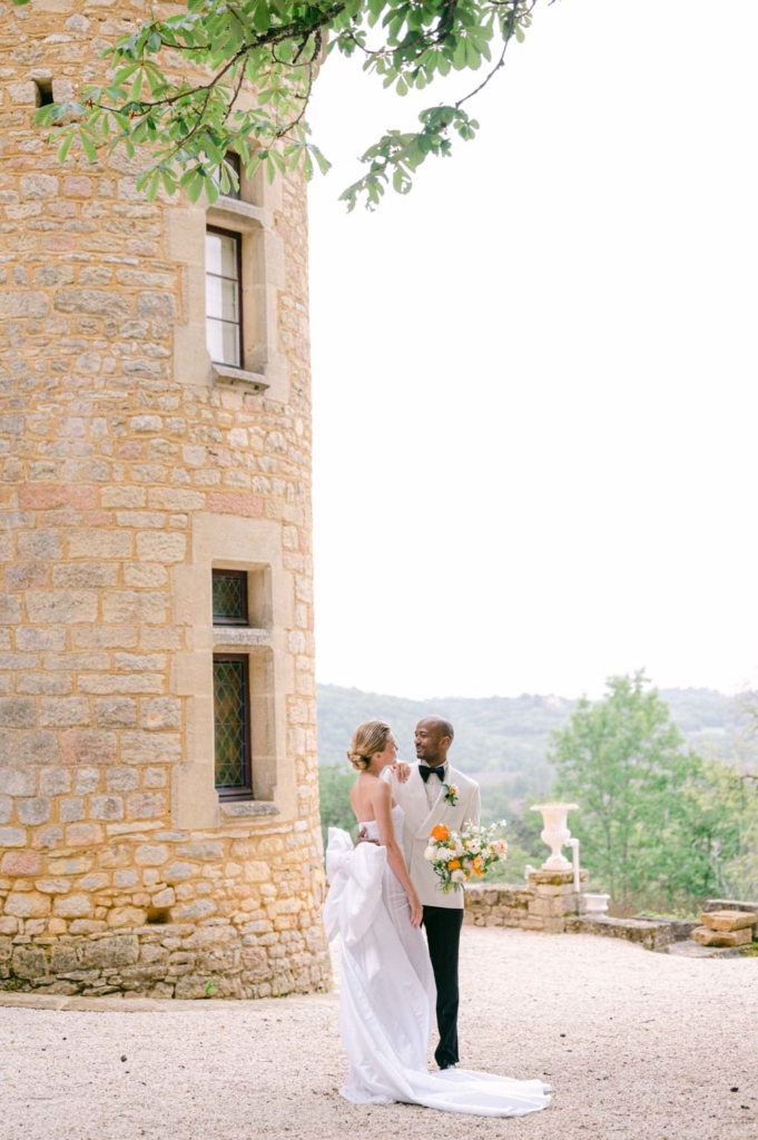 La jolie session de couple de Léa et Marvin au Château de Rouffillac en Dordogne. Un style moderne élégant avec des couleurs pastels.